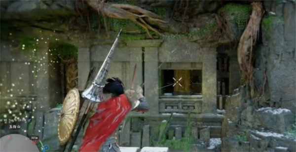 抵达五指山溪谷遗迹,找到三个石像与三个可移动推车,用劲法/法则之力推动,站上车后对面石门自动打开。