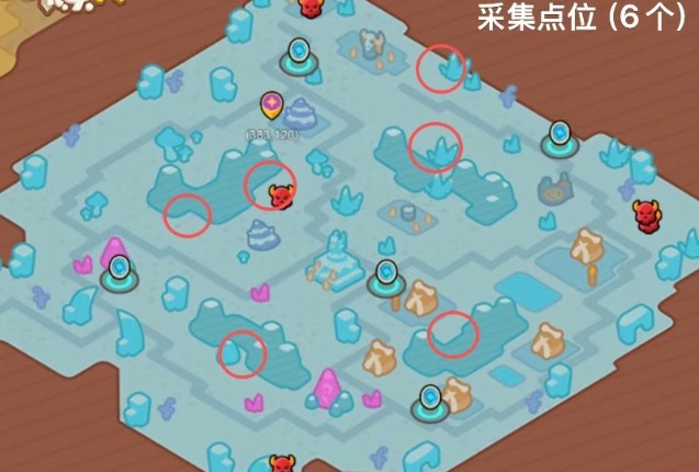 *只有冰英雄可以采集!通过击碎采集点位附近冰柱,冰系英雄头上携带“雪花”buff时,方可采集。