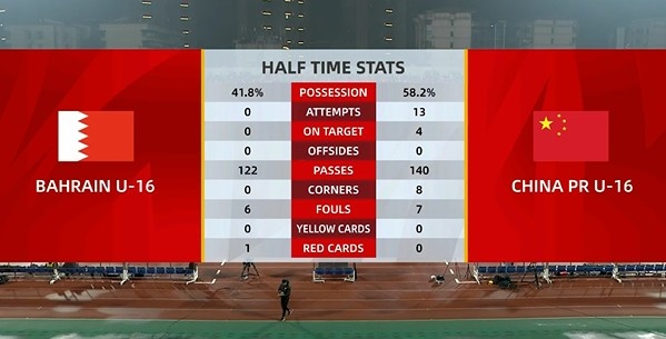 附国少队vs巴林半场数据(巴林在前):
