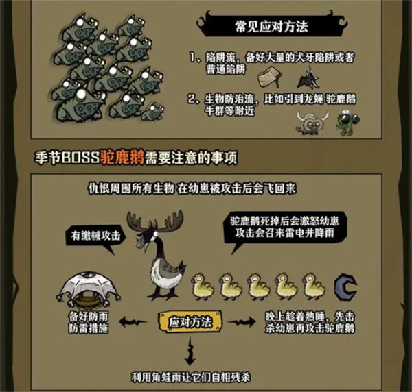 在饥困荒野这款冒险生存游戏里四季变化可不仅仅是风景不同,每个季节都藏着独特的生存挑战和资源机遇等你来发现。比如春天要防雨防雷还要对付烦人的角蛙雨,夏天得解决过热自燃还得找洞穴避暑,秋天看似舒服却要抓紧为寒冬做准备,而冬天的严寒和资源短缺更是考验你的生存智慧。想要从容应对不同季节的危机的小伙伴们一定要注意啦。