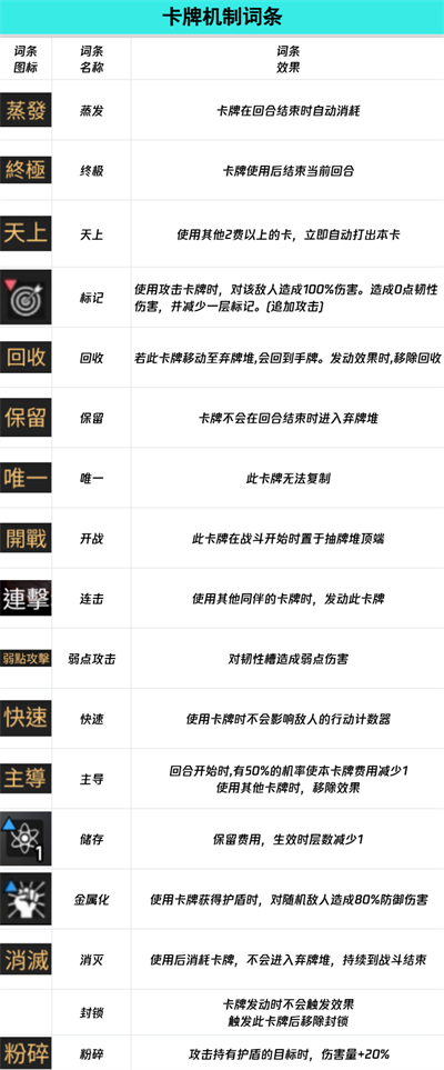还有角色以及卡牌自带的词条效果,只有了解了词条效果才能在对局中更好的决策出策略
