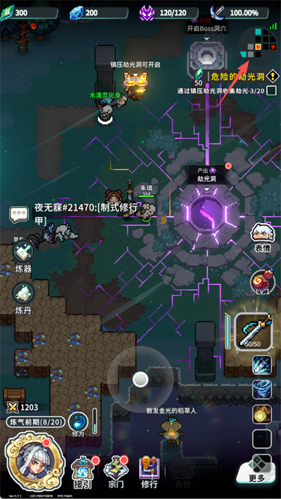 代号灵气是由凉屋游戏开发制作的一款像素风的修仙冒险手游,在游戏中拥有非常多不同品质的修仙角色可以通过招募获取,游戏有点类似DNF那样需要通过击杀野外妖物来获取门票打开BOSS关卡,并且地图都有点类似DNF,还可以和其他玩家一起讨伐BOSS。