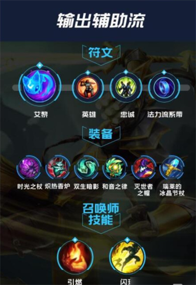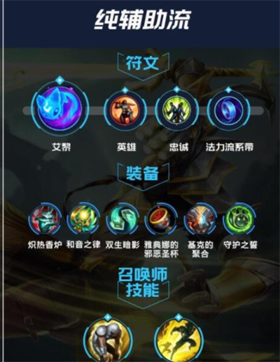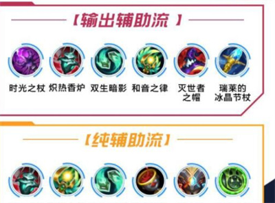 2、出装思路:这套输出辅助流出装兼顾输出和辅助,但是比较脆,一定要对自己有一定的信心,纯辅助流主要是以辅助为主;