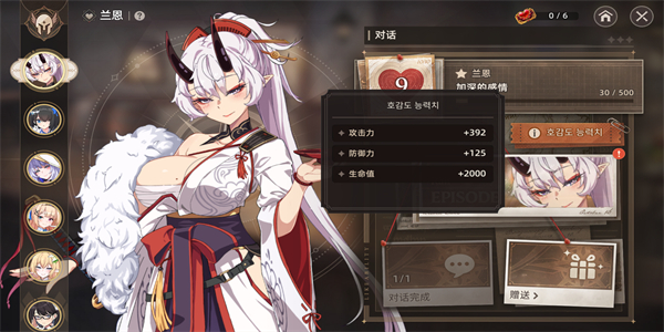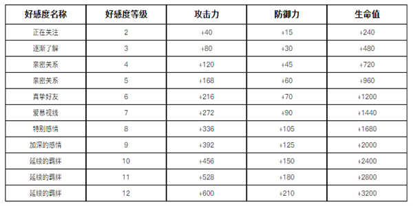 遗忘之剑手游中,每个角色都是可以培养好感度的,而且每天拥有6次免费培养好感度的机会,当角色好感度增加时,其各项属性也会有一定的提升。
