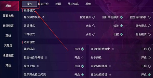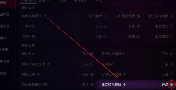 选择基础设置 → 操作设置,找到“独立检视按钮”选项并将其开启。
