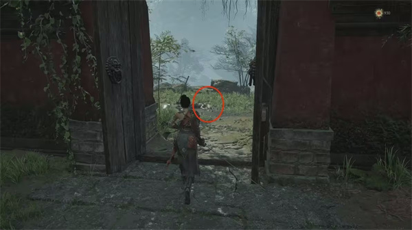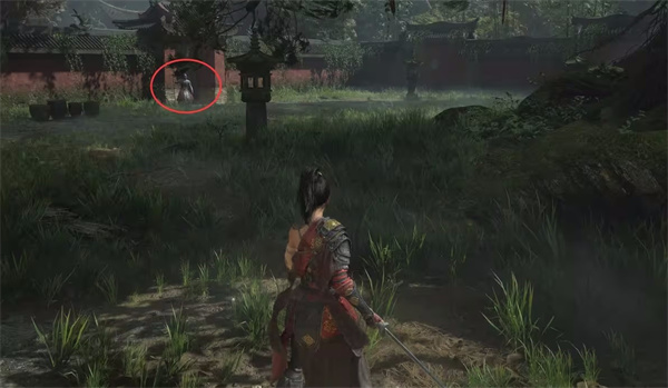 在击败白克虏后,你将在神龛处重生。走下楼梯时,周遭的敌人将重新刷新。注意左边门旁会出现一位强大的明军敌人,他显得尤为危险,而且此门暂时无法打开。此时,强烈建议避免立刻与他交锋。如果你选择战斗,你可能会获得武器强化材料【黯淡红羽】(1-3级),但风险有点高。
