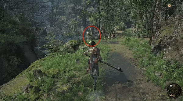 下楼梯后向右边走,从船夫前面的门离开院子,门口可拾取第二把武器【长柄斧*1】,按esc可打开背包装备新武器。【长柄斧】虽攻速较慢,但具备强大的破防能力,非常适合对抗重甲敌人(如后续出现的明军精锐)。