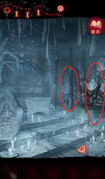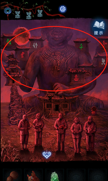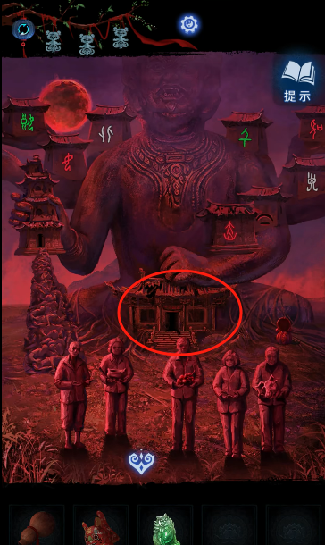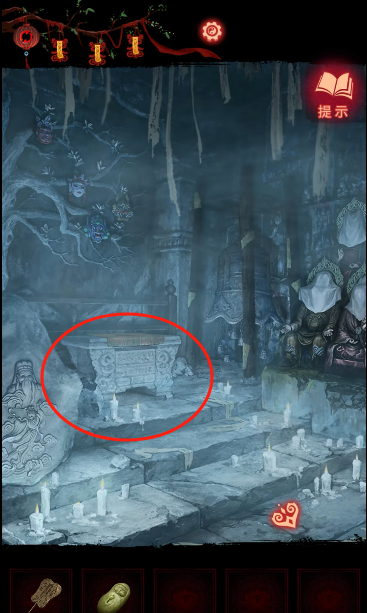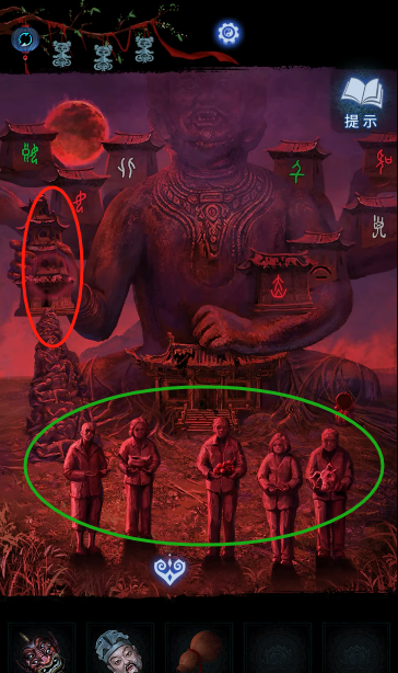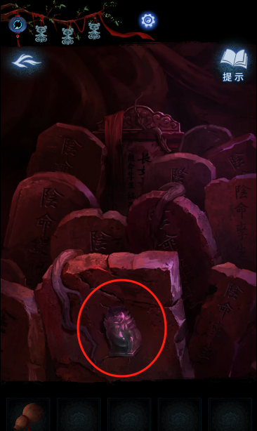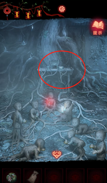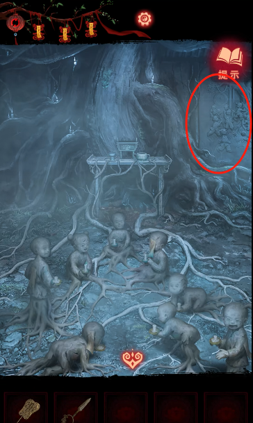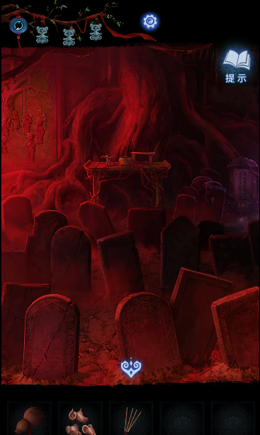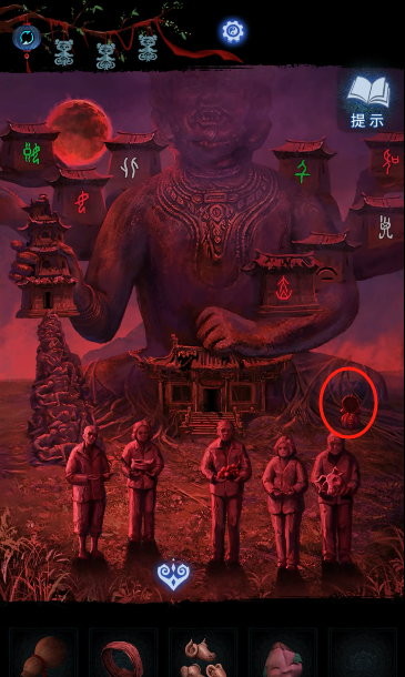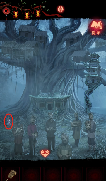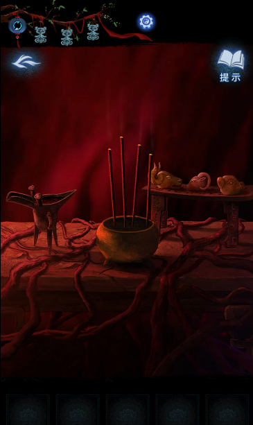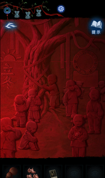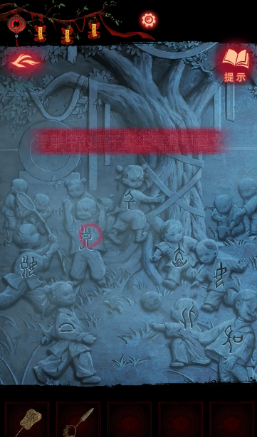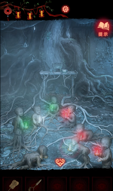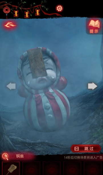 根据娃娃头上的符纸摇摆的方向来煽动铜扇即可撞碎娃娃获得带刺种子和石榴