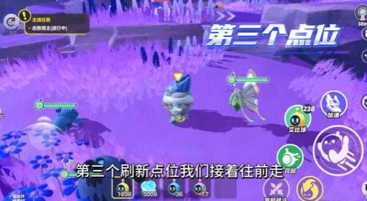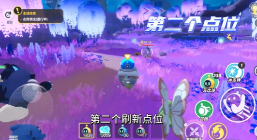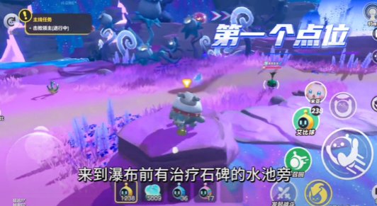 第一个刷新点位:来到瀑布前有治疗石碑的水池旁,这里就是第一个刷新点位;