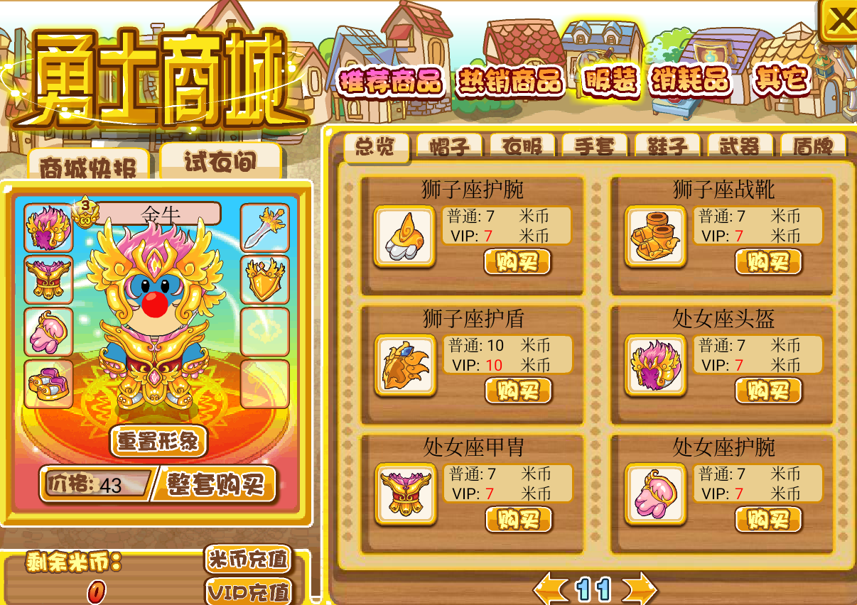 2.处女座套装(优点为攻击、蓝量、必杀)pve/pvp均可,获取途径世界刷任意怪物随机掉落星座套装散件/市场购买白板或打孔成品/商城购买白板(优先看市场价格,游戏内可获得的情况下通常比商城便宜)。