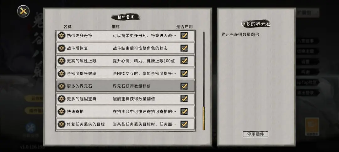 最重要的就是开启插件否则就没有登仙境,界元石就没法获取。