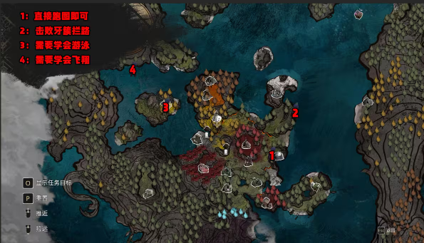 找回4个:获探索技能破障,可破发光树枝,关键在推完主线遗留古战场后达成。