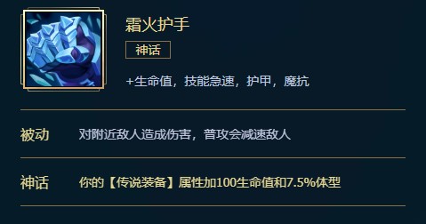 英雄联盟的神话装备大家知道吗?霜火护手就是英雄联盟里面的一个神话装备。这套神话装备是英雄联盟在10.22版本中更新上线的。
