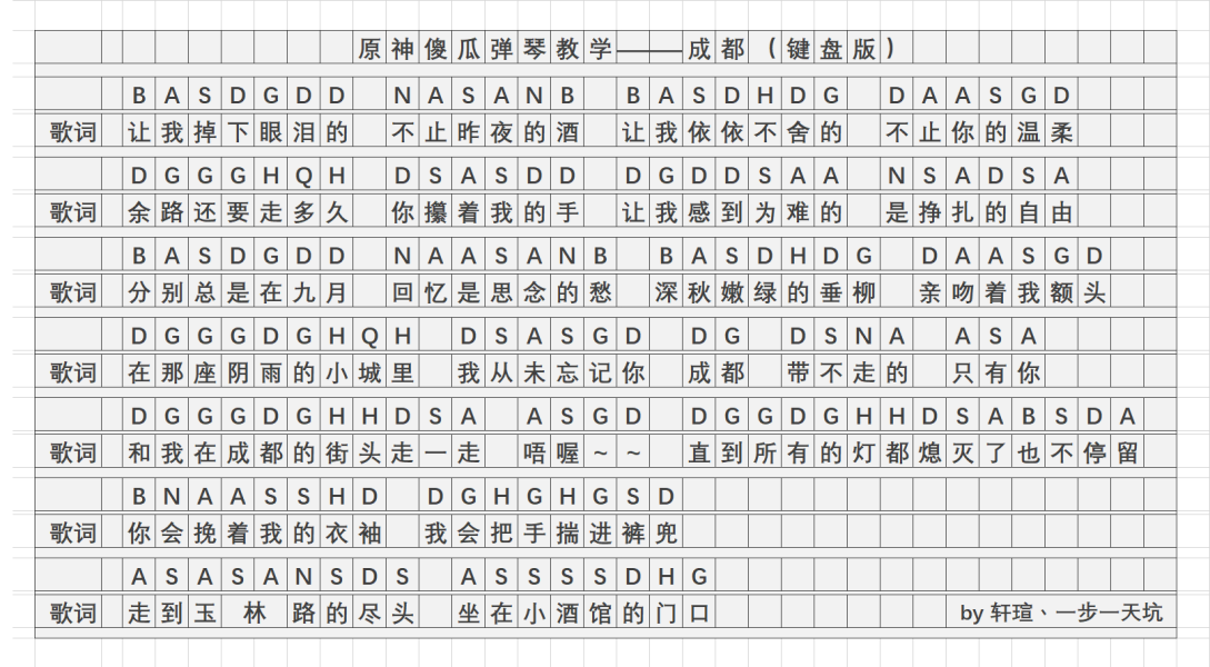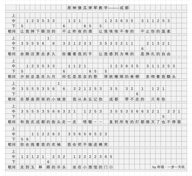 原神成都是一首好听的民谣,一起去成都的街头走,走到宽窄巷子,目人情世故,原神成都怎么弹?