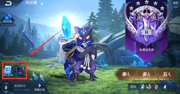 4、随后玩家点击排位赛左下角的峡谷异闻。