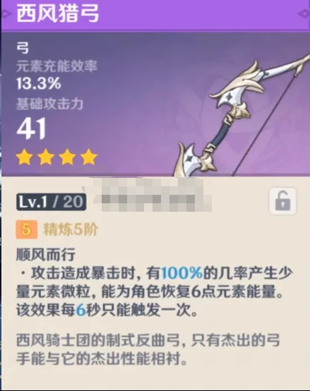 以上便是小编为大家带来的原神西风猎弓满级属性介绍,这一武器是比较适合菲谢尔、温迪、五郎。相信现在你已经了解到了西风猎弓的满级属性,更多武器属性敬请关注手游网。