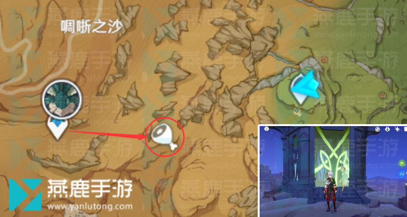 以上就是这篇文章有关原神千壑沙地地灵龛位置的所有内容了,这样就能够解锁地灵龛了。更多游戏相关资讯内容,敬请关注手游网。