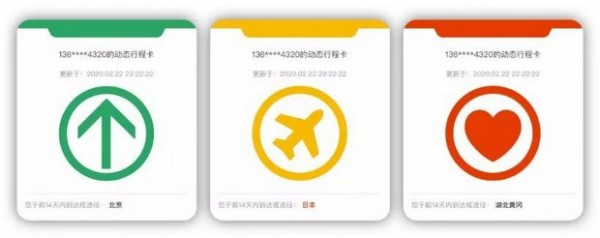 4、一共有三种颜色,红色代表14天内到过高危区,黄色代表从境 外进入,其他情况均为绿色。