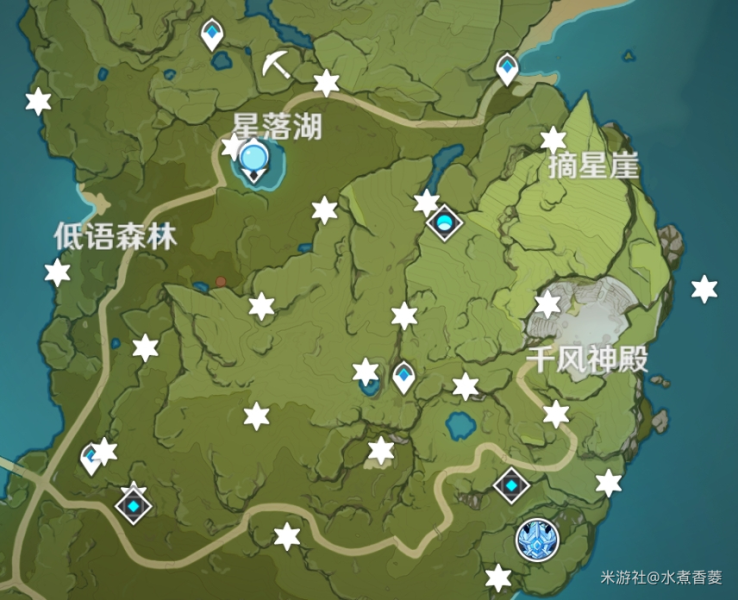 原神的未知之星三个任务分别分布在星落之地、轻策庄以及孤云阁,星落之地有20多个未知之星。