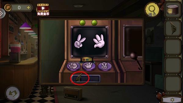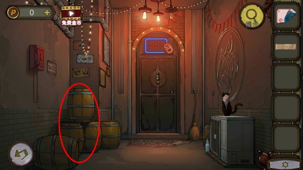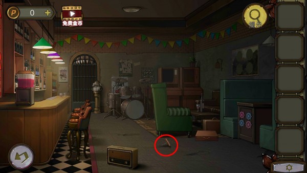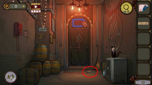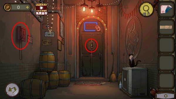 6、玩家根据灯牌的线索投币可以拨打电话号码,然后拿到卡片,将卡片塞进缝里打开酒吧的门。