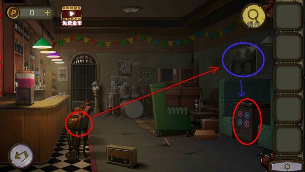 15、在酒吧灯按提示换对颜色,拿到游戏卡带。