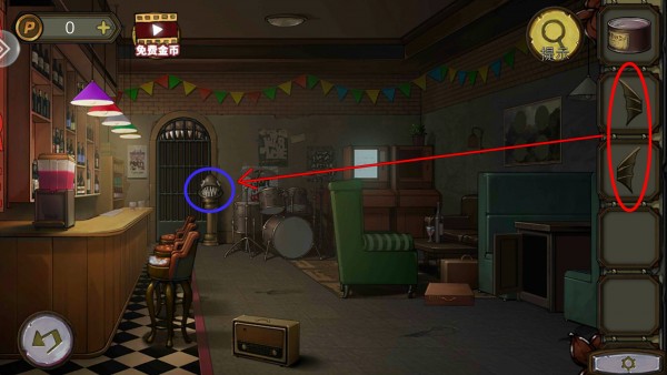 11、玩家在酒吧椅子里拿到纸盘,纸盘放墙画上,调整纸盘的方向。