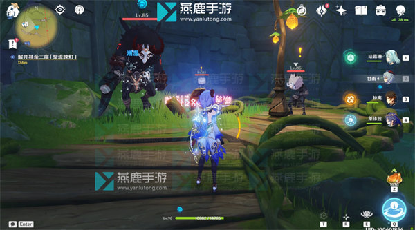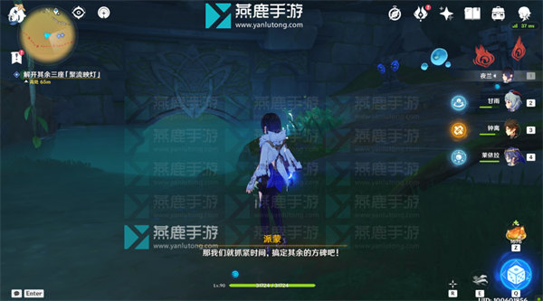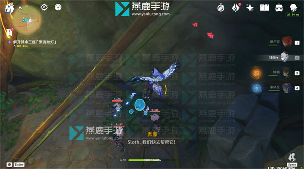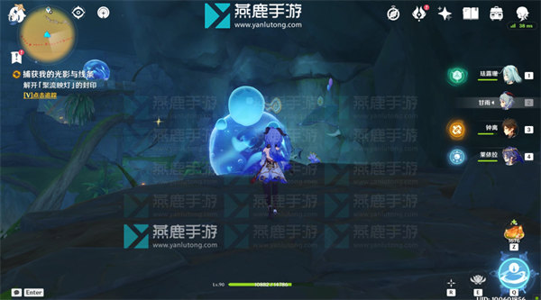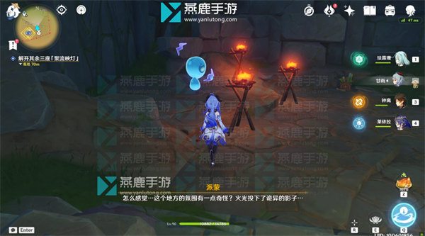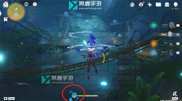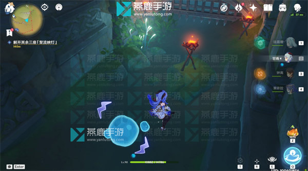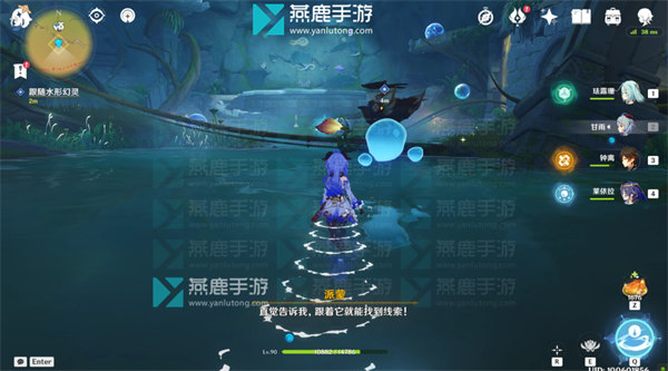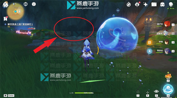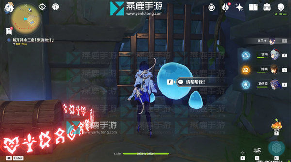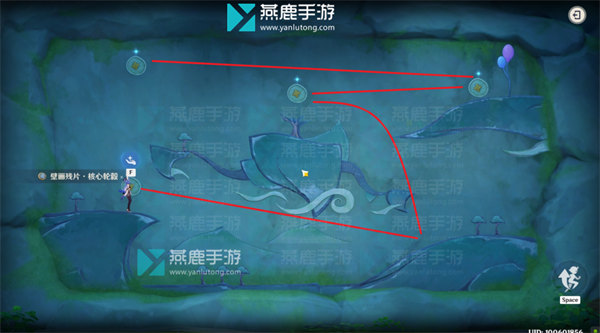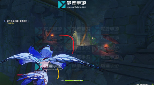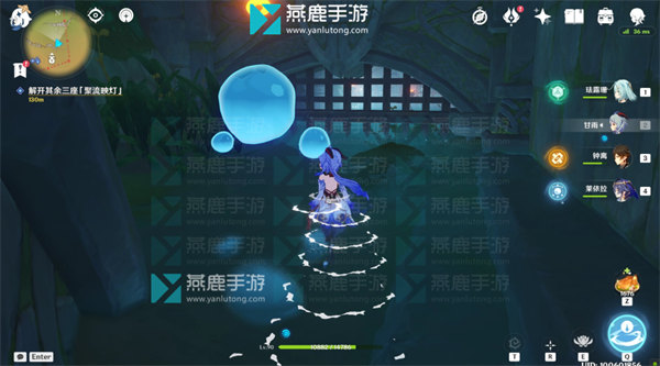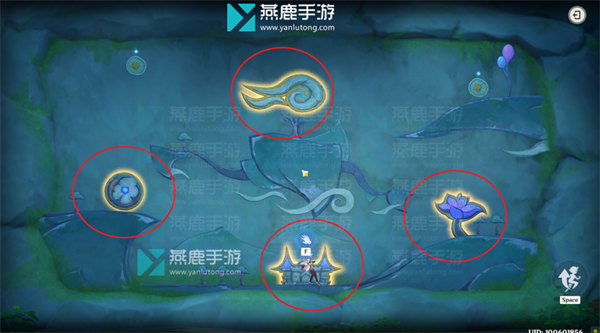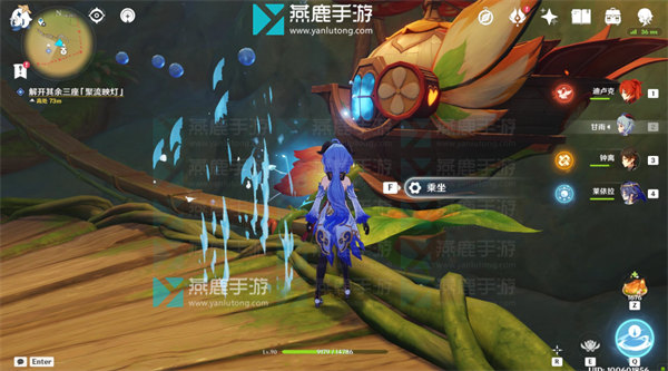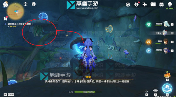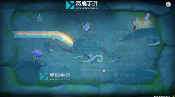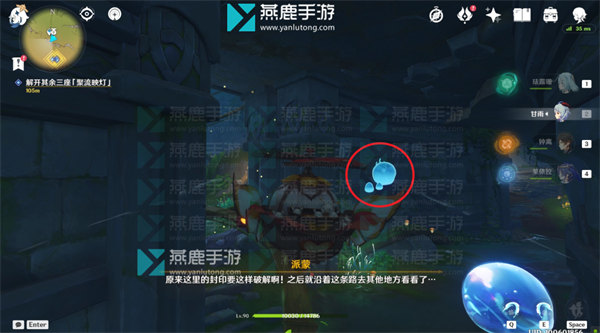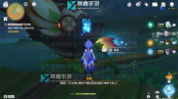 17、乘坐「呼呼飞车」时会在路上遇到一个「小水珠」,解开第一座「聚流映灯」后返回该处,跟随「小水珠」。