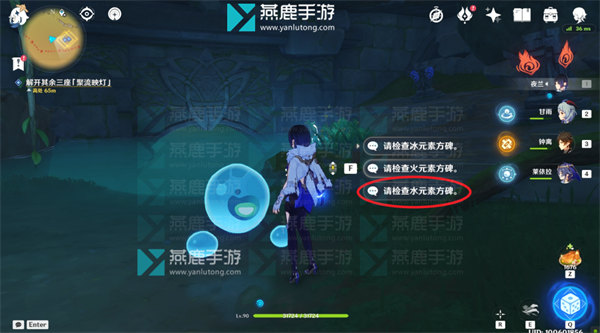 21、击败丘丘人后,来到第二处方碑。跟「小水珠」对话,点击“请检查水元素方碑”。