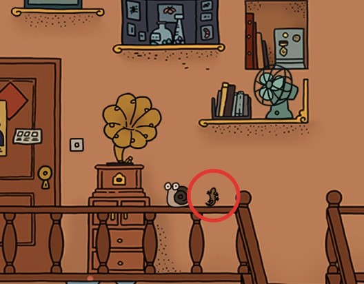 2、在我们等待30秒到1分钟的时候,我们就能发现在二楼楼梯扶手旁边的左侧墙上就看看到壁虎出来了。