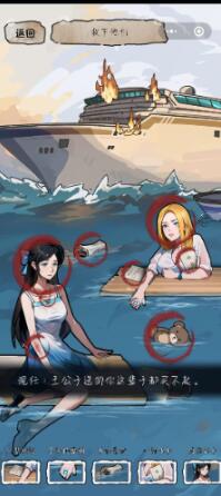 3、玩家找齐需要的东西后,会弹出选择框,在这里玩家不管选择谁都会显示任务失败,这时玩家需要把右上角的小船向左滑出,把前妻和现任放进去任务通关。