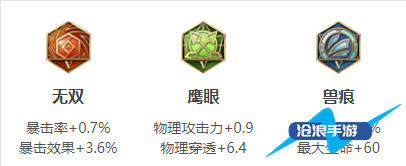 一般不卡攻速的话是带无双鹰眼兽痕的。