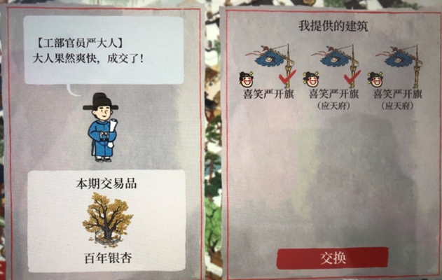 ,因为兑换的建筑还是比较好获得的,虽然严大人是个贪官,但是他手里的建筑都是非常值得我们去兑换的。毕竟想要不氪金的话只能在他这里兑换了。