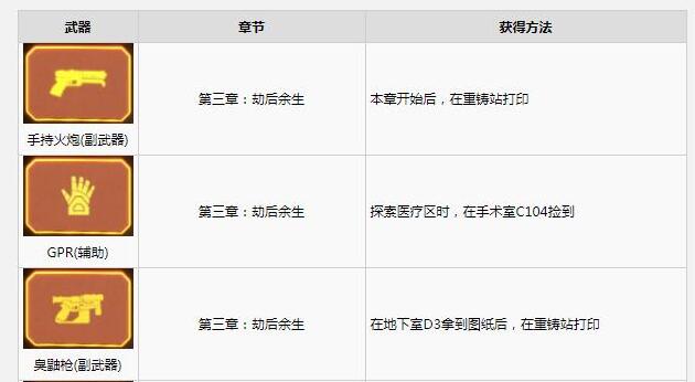 4、手持火炮(副武器):第三章(劫后余生)开始后,在重铸站打印。