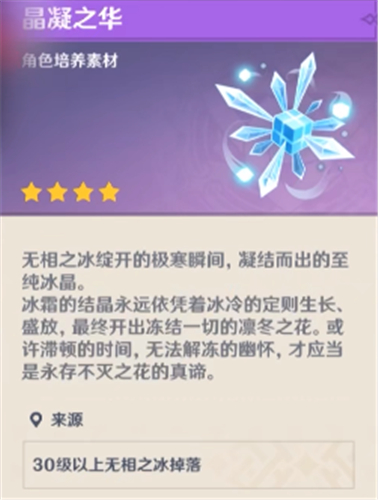 2、晶凝之华,新boss,雪山上,通过挑战30级以上无相之冰获得;