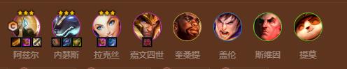阵容推荐:阿兹尔、内瑟斯、拉克丝、皇子、奎桑提、盖伦、斯维因、提莫