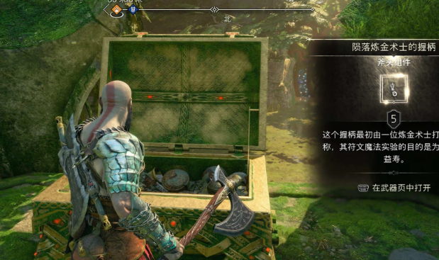 在华纳海姆朝圣者登陆点完成支线任务王者之愈,完成后的第二座桥后打开传奇宝箱后,可获得斧头组件陨落炼金术士的握柄。