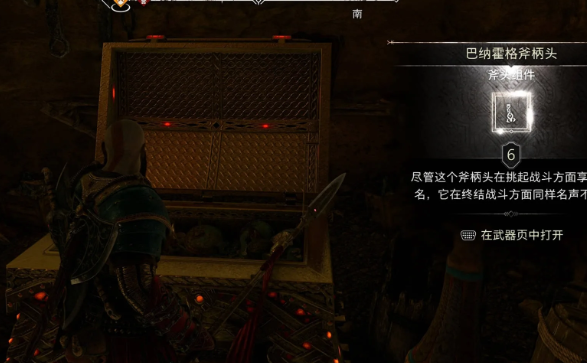 斯瓦塔尔法海姆苹果核如下图位置,打开大门需要芙蕾娅的魔法,然后打开传奇宝箱即可获得斧头组件巴纳霍格斧柄头。