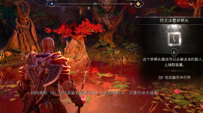 在华纳海姆平原,将水闸打开,来到许愿池,需要从丛林拉动链条,随后把结晶道具扔进许愿池,即可获得斧头组件符文冰雹斧柄头。