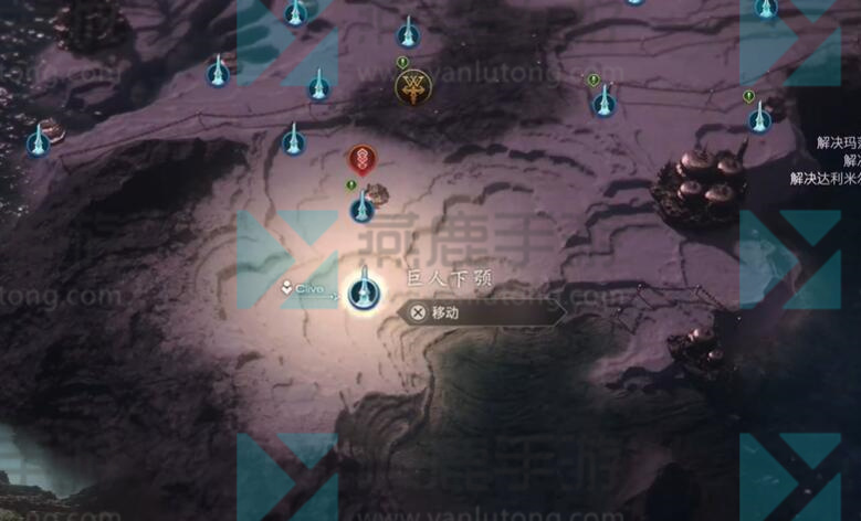 1、玩家打开地图之后然后传送到巨人下颚这里。