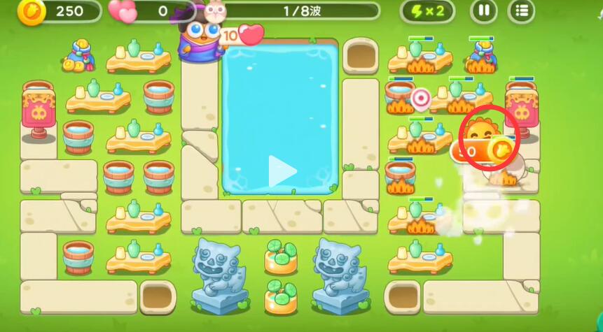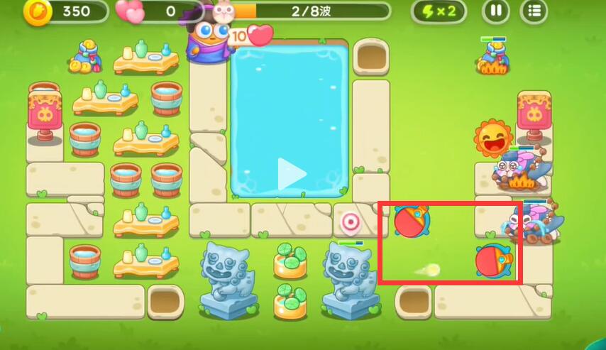 7、有金币的话就在池塘里多多的放置一些炮塔就可以了。
