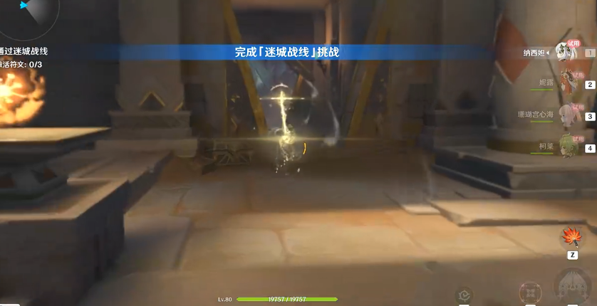 4、进入挑战后,可以前往不同的方向激活古代符文,一共有3个。