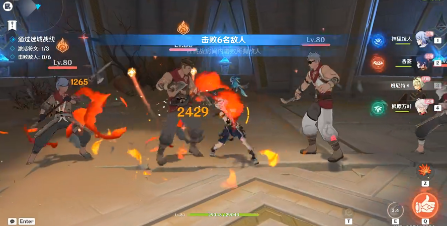 2、选择神里绫人+香菱+班尼特+枫原万叶。