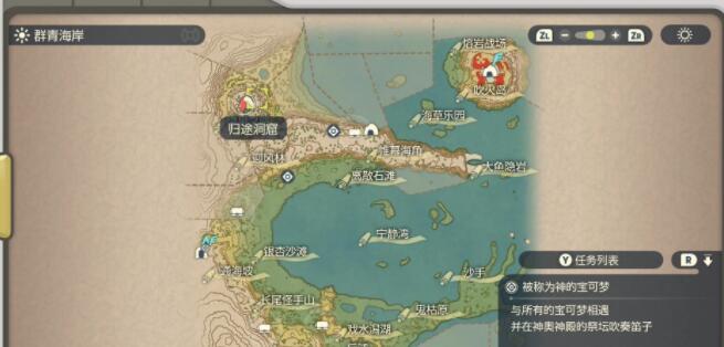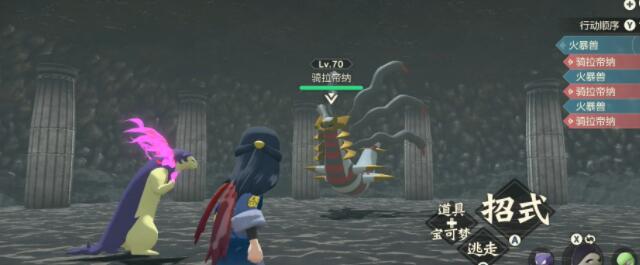 2、前往群青海岸,在地图西北处的归途洞窟内捕捉骑拉帝纳。(起源形态进入战斗)