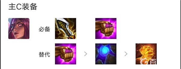 3、主C的必备装备是无尽、珠光护手,替代装备是珠光护手、蓝霸符、正义之手。