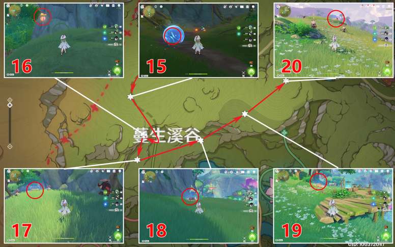 1、蔓生溪谷地图区域中礼券的分布图如下图所示,有20个礼券点位。