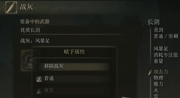 4、能赋予的战技、属性会依照武器类别有所限制。部分特殊武器(例如具备固有战技的武器),无法用战灰赋予战技、属性。