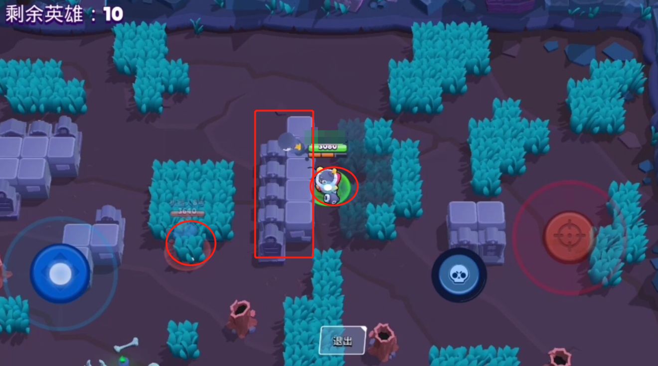 2、在荒野决斗模式中:躲在草丛里,等敌人过来一顿毒打;