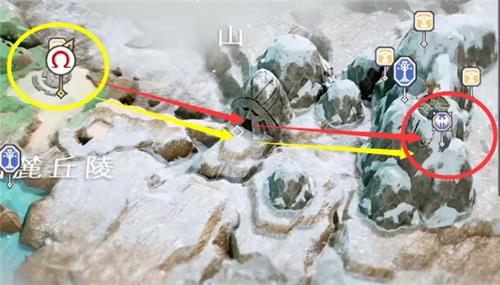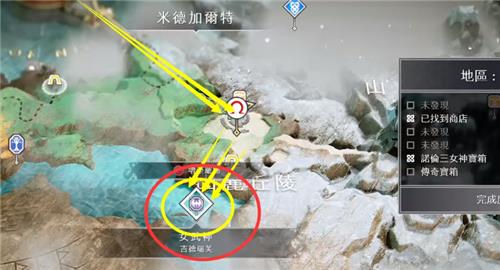 在米德加尔特山麓丘陵的如图位置可以找到古德瑞福。