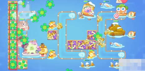 1、这一关卡地图特殊,玩范围炮塔和减速炮塔非常不错,推荐选择、风扇、飞机、船锚、魔法球、鱼刺等。