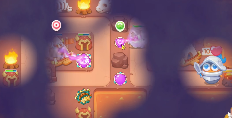 4、基本上就是建立魔法球,萝卜附近导弹,继续清理障碍物。